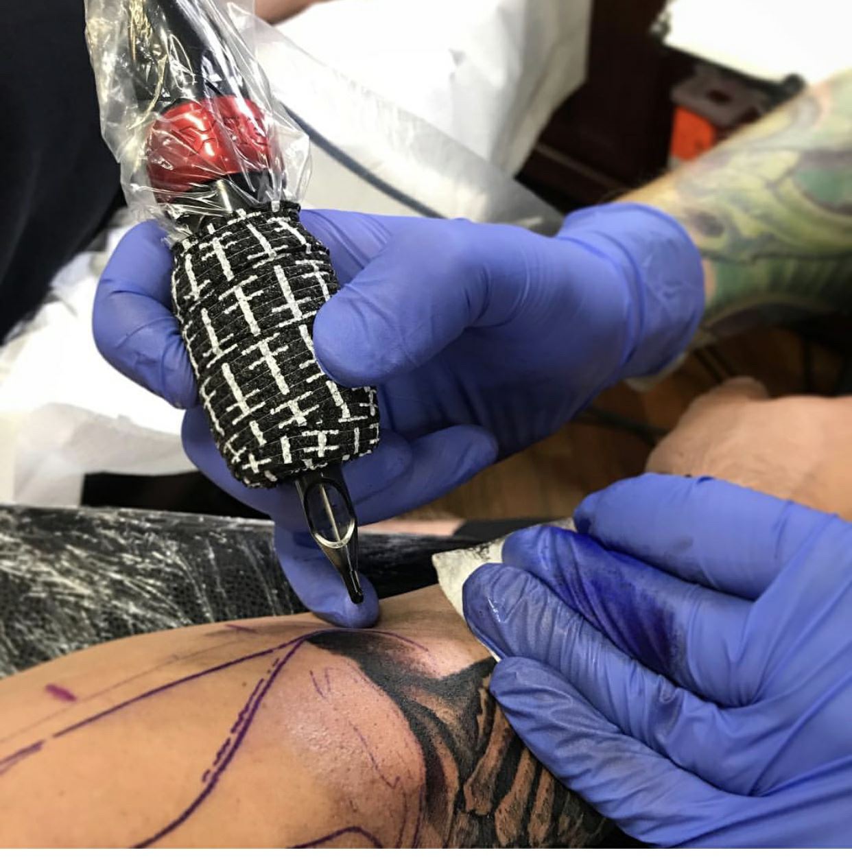 Uzun mürekkep seansları sırasında el yorgunluğunu ve krampları azaltır. Yumuşak, esnek kumaş ayrıca metal veya plastik kavramanın ter veya mürekkeple nemli olsa bile elinize kaymasını önler.